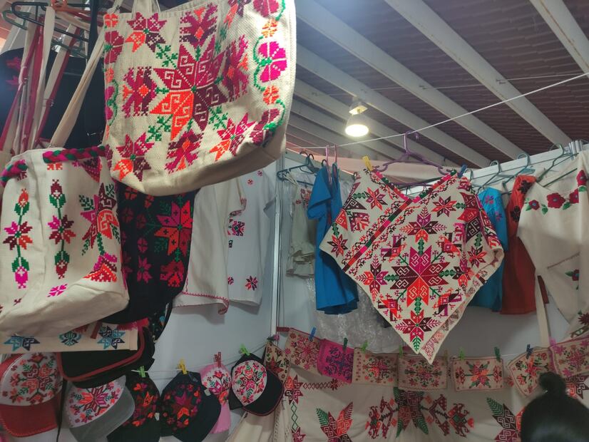En medio del pabellón artesanal se puede encontrar un stand atendido por la señora María, una orgullosa integrante de la cultura teenek, quien lleva años dedicándose al arte del bordado.