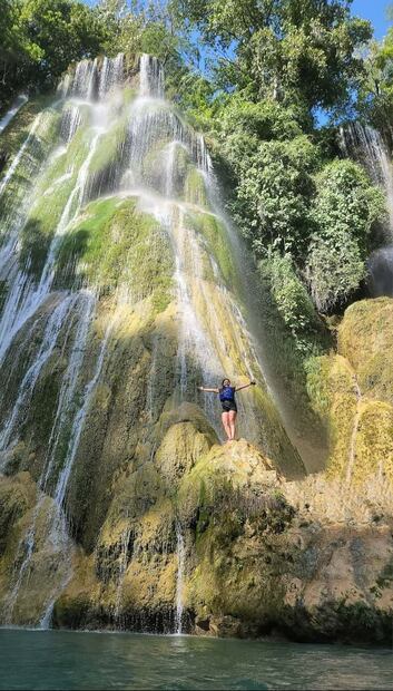 Las pozas de aguas turquesa y verde que se forman con el agua que cae son ideales para nadar debido a su baja profundidad.