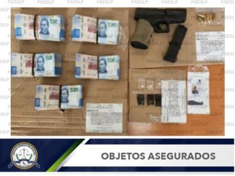 El sujeto dijo ser policía municipal de Villa de Reyes y mostró una credencial de la corporación que ya no se encontraba vigente desde septiembre de 2021; además, intentó sobornar con el dinero que portaba a los elementos investigadores para que no lo arrestaran.