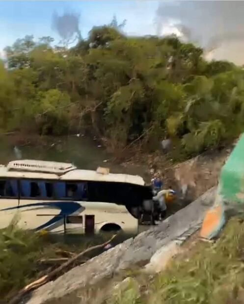 La tarde de este miércoles se registró un accidente en la carretera que conduce a Ciudad Valles; un autobús con turistas volcó y cayó a un arroyo en la comunidad La Hincada en el municipio de El Naranjo.
