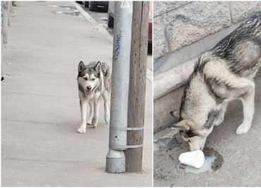 El lomito, que porta un collar azul con huellitas, se encontraba muy asustado y fue rescatado gracias al reporte ciudadano