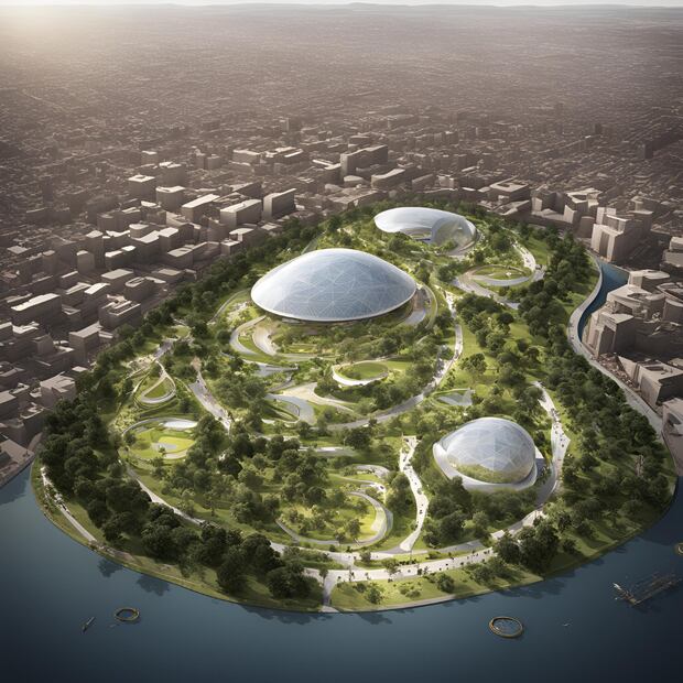 La IA prevé que para ese año el parque se haya convertido en un modelo de sostenibilidad y armonía con la naturaleza. Con prioridad a la biodiversidad y con las grandes áreas del parque cubiertas por jardines verticales y techos verdes que funcionan como filtros de aire y espacios recreativos.